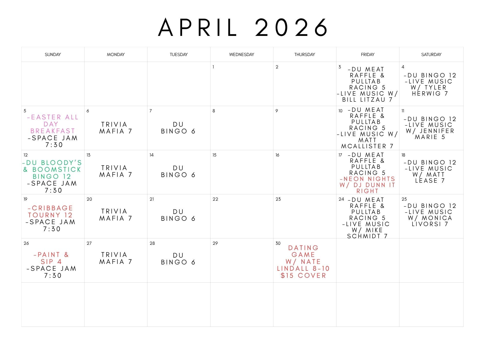 11am-5pmHB's Cribbage TournamentSunday, April 19th, 2026